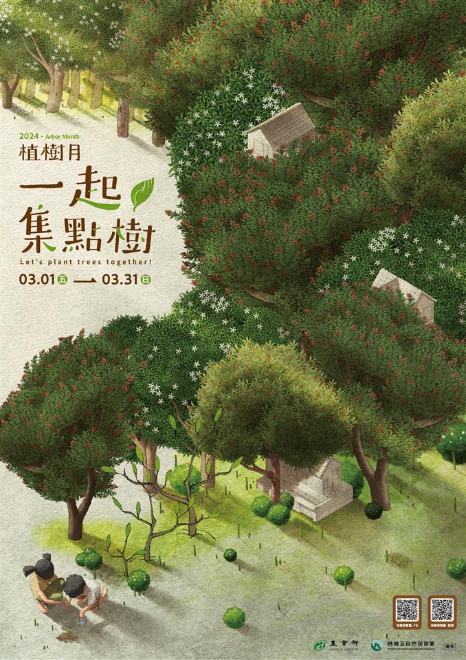 其他資訊 113年「一起集點樹」植樹月宣傳海報 歷史訊息 | 發布日期: 2024/02/21~2024/03/21 | 瀏覽人數: 35人 | 聯絡資訊: 鍾汶達 8969906分機182 一、 縣府訂於113年3月3日(星期日)上午10時假彰化市香山步 道東方公園(台74線中彰快速道路旁,定位點:N 24.0635;E 120.5931)辦理 「彰化縣113年植樹活動」。 二、 現場有贈樹苗活動外,還有各式宣導活動,請民眾踴躍參與。