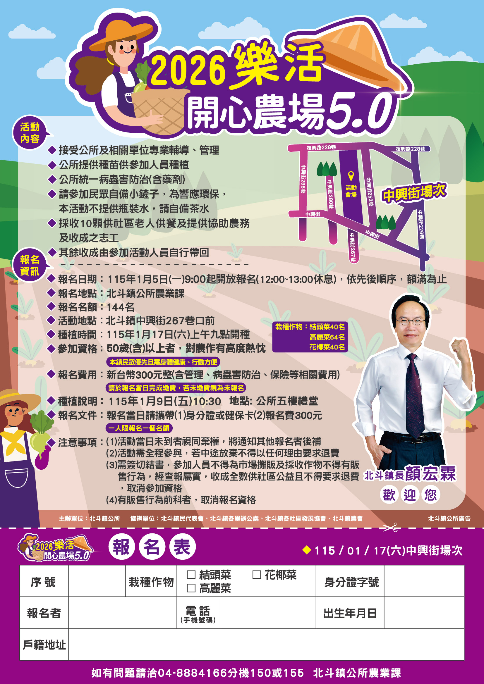 【公告】2026樂活開心農場5.0來囉🤩歡迎各位鄉親踴躍報名👏