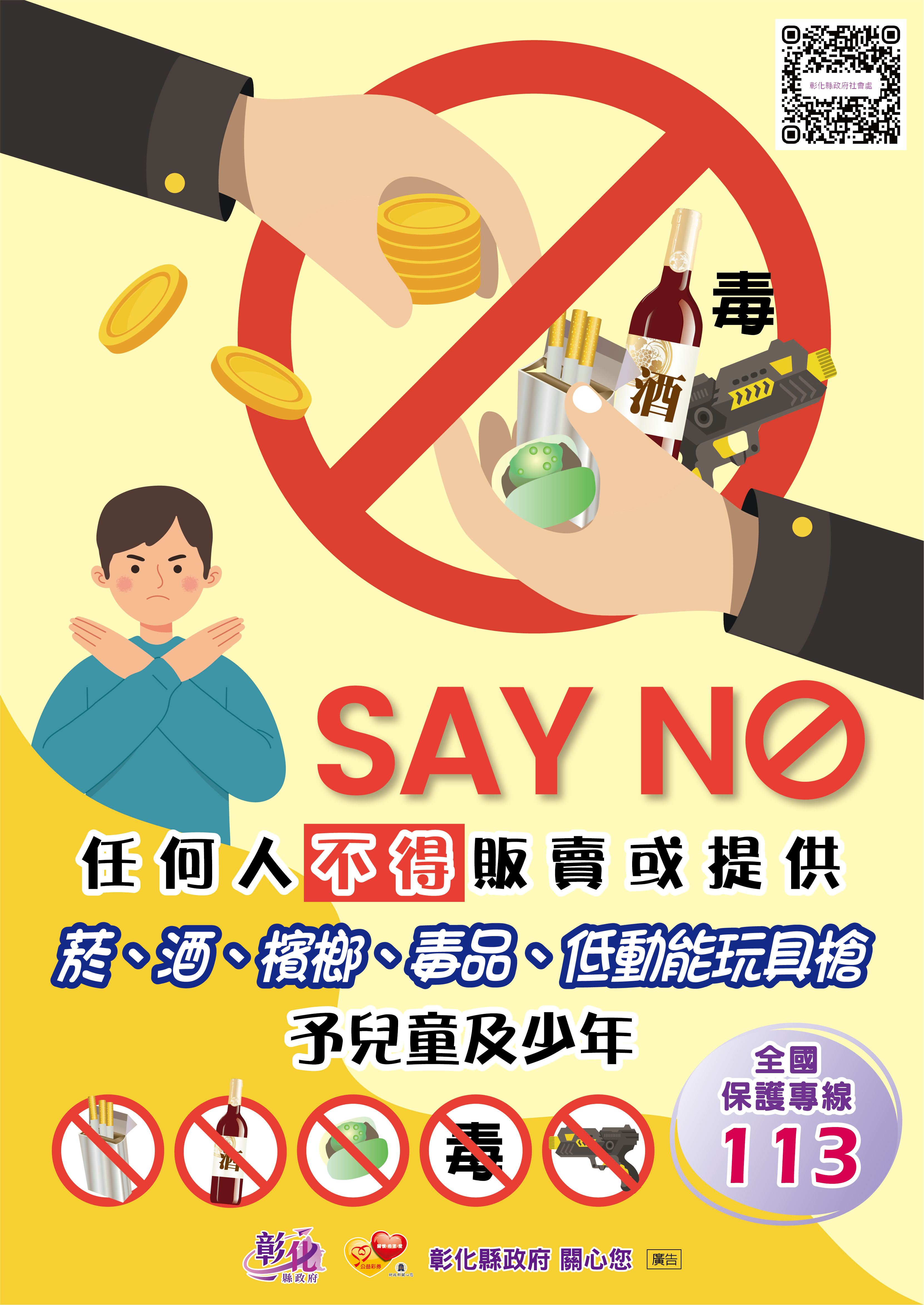 其他資訊 114年彰化縣政府兒少保護暨有害身心健康物質宣導 發布日期: 2025/05/12~2025/12/31 | 瀏覽人數: 202人 | 聯絡資訊: 社會課 分機8942980#165 「守護兒少零距離,有害物質都遠離!」 1. 網路世界停看聽,使用3C不沉迷 2. 不拍攝、不分享、不持有兒少私密性影像 3. 不菸、不酒、不毒、不吃檳榔、不玩殺傷力遊戲用槍 4. 網路陷阱要注意,兒少幸福不剝削 5. 如發現兒少家暴、兒虐、性侵害事件,請撥打113保護專線 6. 無毒有我,向毒說不 7. 守護青春齊手救援,防制兒少性剝削 8. 遠離危害,青春才High彰化縣社會處-兒少保護宣導專區網址 : https://social.chcg.gov.tw/07other/other01_list.aspx?topsn=6846