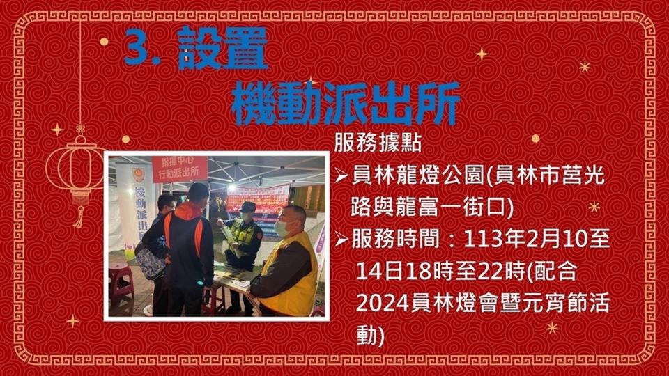 最新公告 113年加強重要節日安全維護工作宣導 歷史訊息 | 發布日期: 2024/01/30~2024/02/29 | 瀏覽人數: 26人 113年加強重要節日安全維護工作-「治安平穩、交通順暢、民眾安心」,員林分局服務不停歇,守護民眾好過年,大村分駐所關心您!