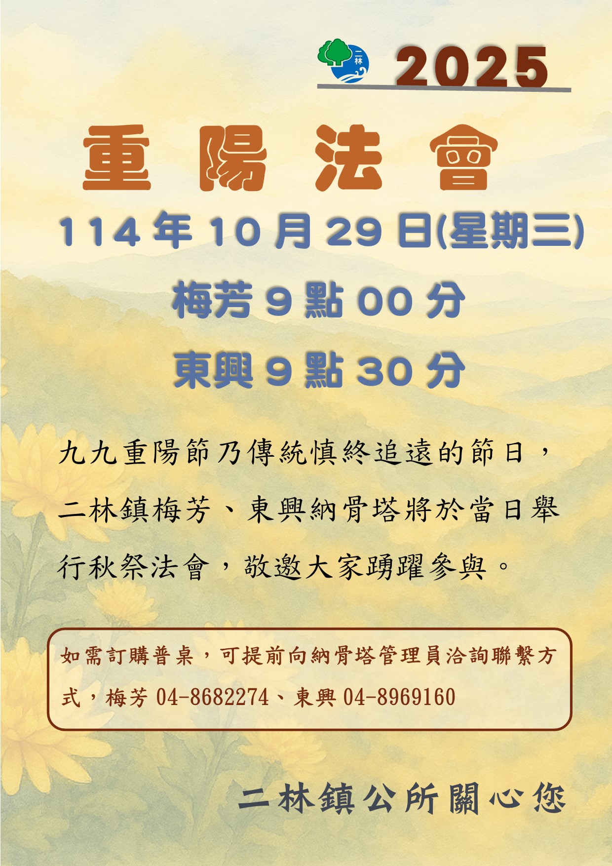 2025納骨塔重陽法會公告