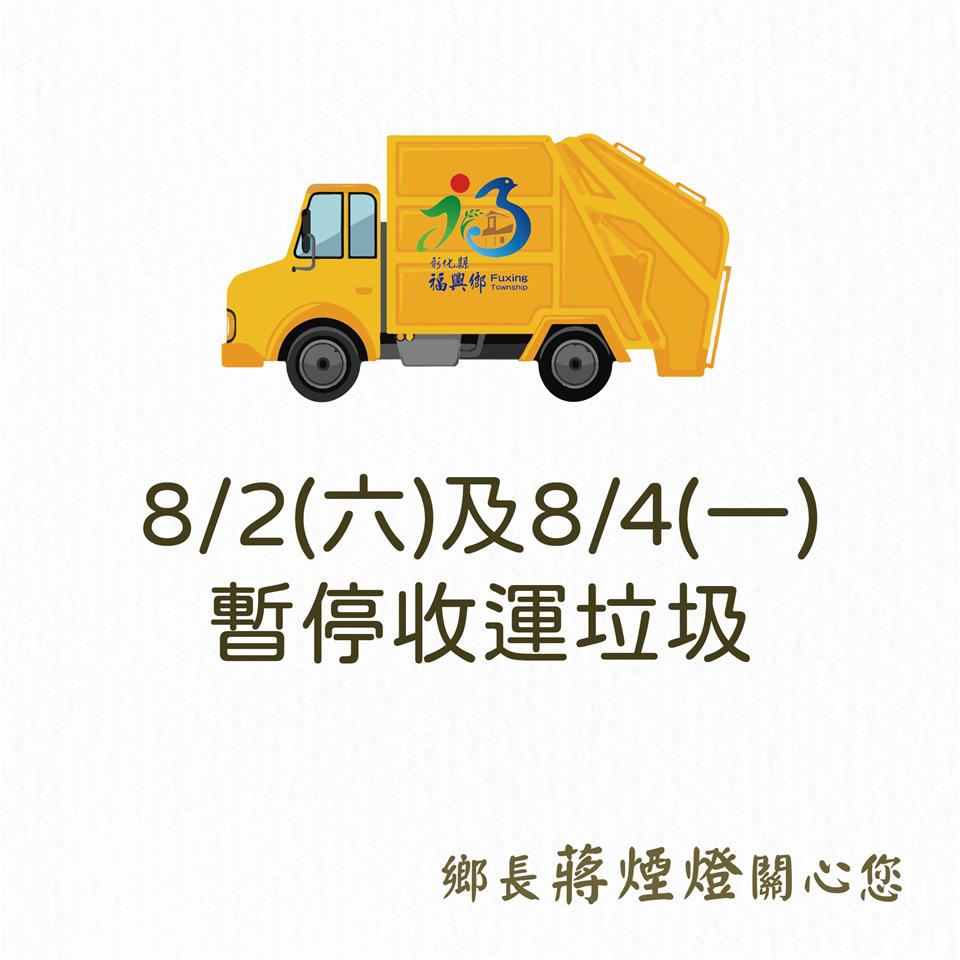 福興鄉公所公告-8/2(六及8/4(一)暫停收運垃圾