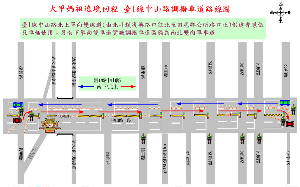 其他資訊 彰化縣警察局北斗分局為維護115年4月23、24日「大甲鎮瀾宮天上聖母遶境進香活動」行經期間交通秩序,將視交通狀況彈性管制車輛 發布日期: 2026/04/14~2026/04/24 | 瀏覽人數: 23人