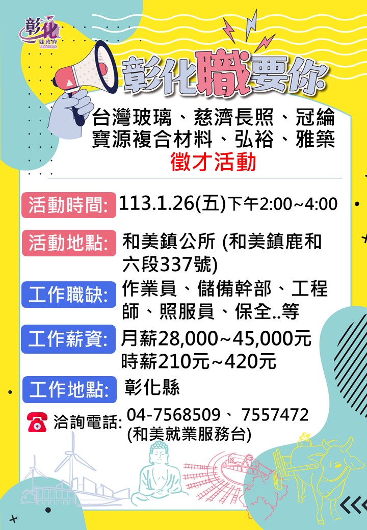 台灣玻璃、慈齊長照、冠綸、寶源複合材料、弘裕、雅築小型徵才活動