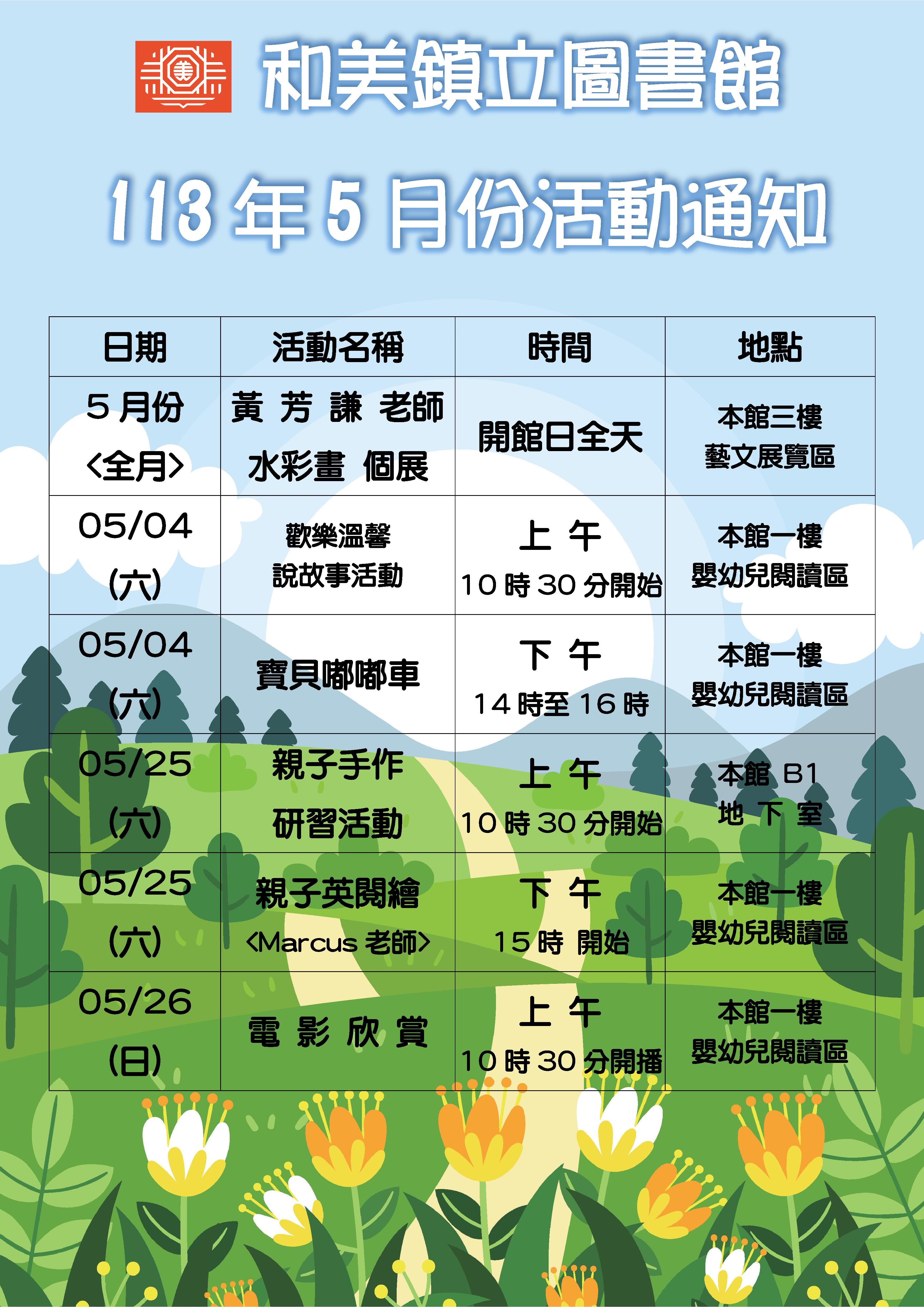 和美圖書館113年5月份活動