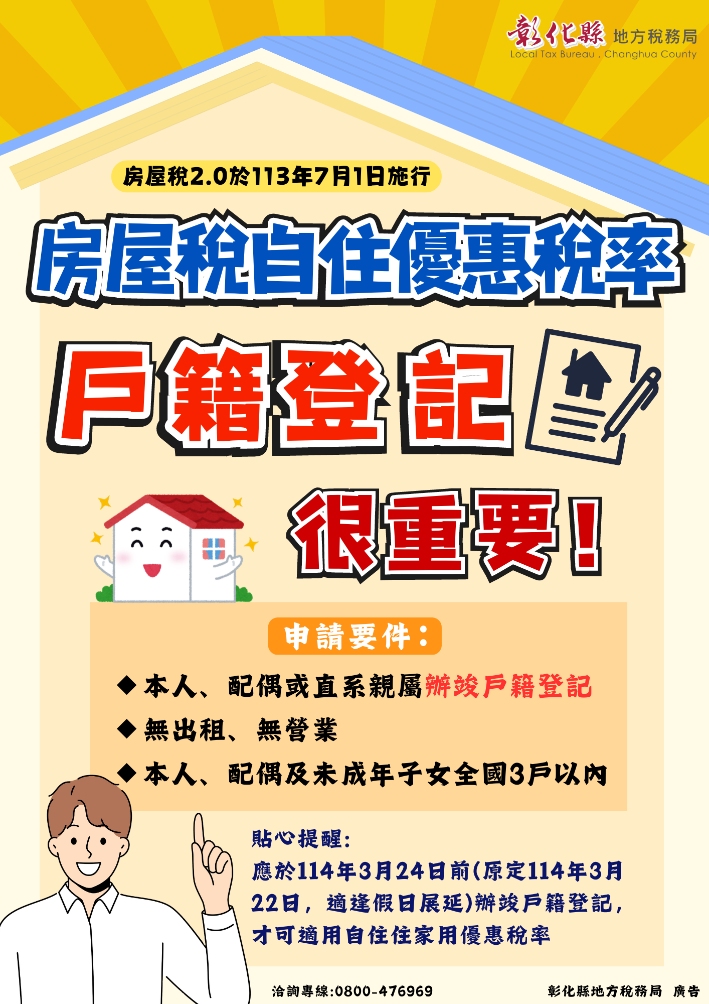 彰化縣地方稅務局「113年房屋稅新制-房屋稅自住優惠稅率」宣導
