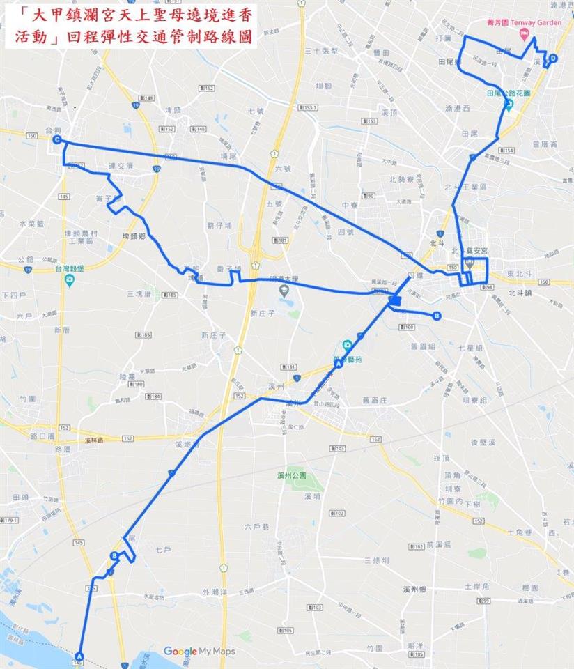 最新公告 轉知~彰化縣警察局北斗分局為維護115年4月23、24日「大甲鎮瀾宮天上聖母遶境進香活動」行經期間交通秩序,將視交通狀況彈性管制車輛公告 發布日期: 2026/04/13~2026/05/13 | 瀏覽人數: 18人 | 聯絡資訊: 林澤佑 詳如附件圖說及公告。