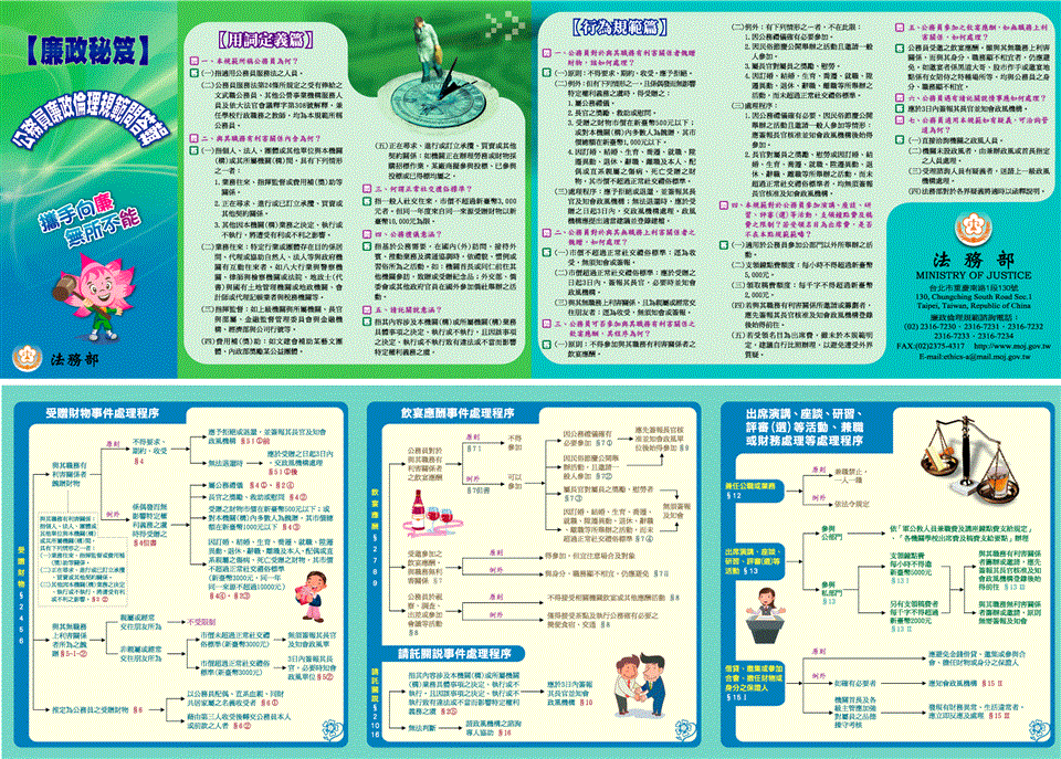 其他資訊 [廉政宣導]-11409廉政宣導彙編 發布日期: 2025/09/17~2026/01/31 | 瀏覽人數: 54人 | 聯絡資訊: 柯孟秀 強化廉政知識,本室於每月彙整公務機密維護、機關安全、反詐騙、利益衝突迴避法、廉政倫理規範問答輯、消費者保護等廉政宣導議題,敬請參閱。 政風室敬傳
