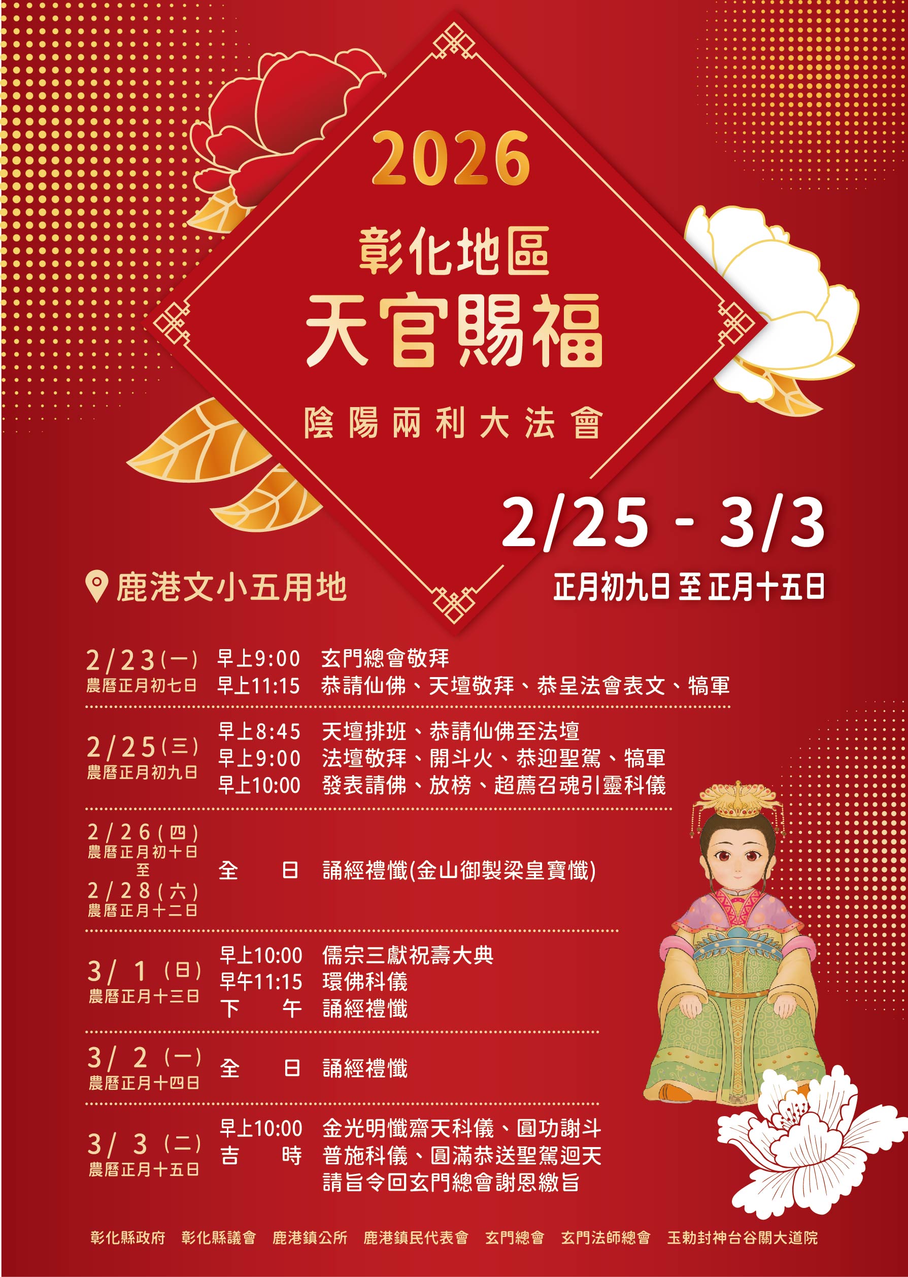 彰化縣政府「115年彰化地區天官賜福陰陽兩利大法會」活動海報