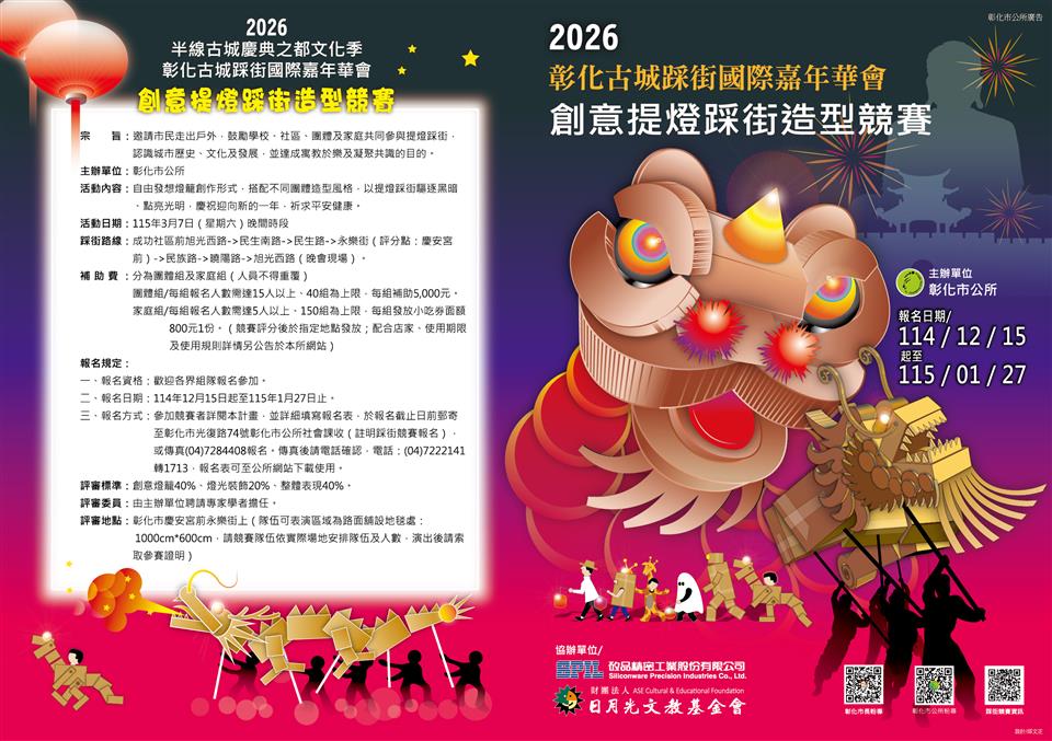 【轉知】彰化市公所彰化古城踩街國際嘉年華-2025創意提燈踩街造型競賽活動簡章