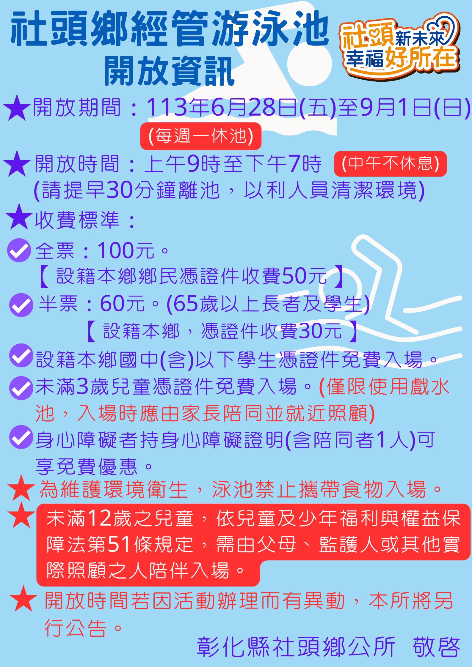 113年社頭鄉經管游泳池開放資訊
