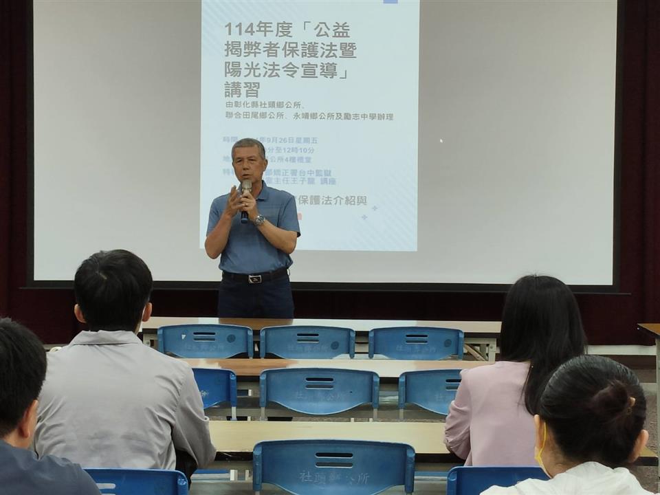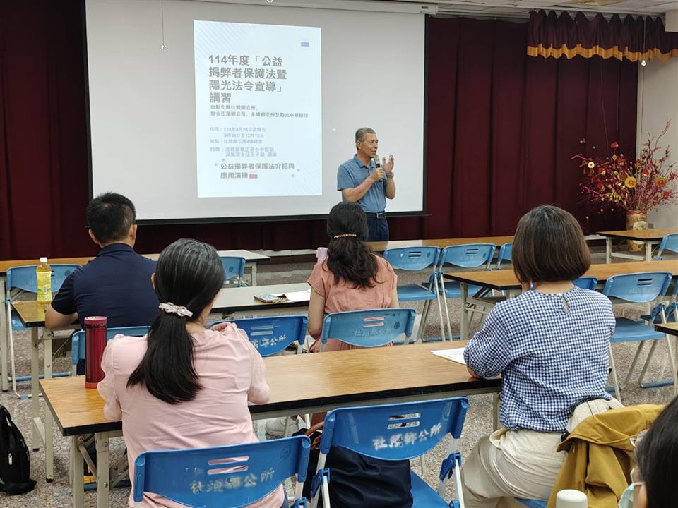 其他資訊 【推動廉政透明 攜手共築陽光政府——社頭鄉公所聯合辦理「公益揭弊者保護法暨陽光法令宣導」講習】 發布日期: 2025/09/26~2025/10/26 | 瀏覽人數: 39人 | 聯絡資訊: 黃主任 分機8732621#191 《公益揭弊者保護法》114年7月22日正式施行,是我國第一部揭弊保護專法,該法針對泛公部門內部揭弊者提供「3保1減1金」之保護措施,包含工作權保障、身分保密、人身安全保護以及責任減免等措施,程序保障部分則有舉證責任倒置及揭弊抗辯優先調查等規定,為確保揭弊者相關權益,該法對於受理程序及保護措施均有特別規範。 為提升基層公務員與社會大眾對廉政法令的認識,強化誠信施政觀念,社頭鄉公所特別結合田尾鄉公所、永靖鄉公所及法務部矯正署勵志中學,共同辦理114年度「公益揭弊者保護法暨陽光法令宣導」講習,期透過跨機關合作,深化對揭弊保護制度與陽光法令的理解,打造廉潔透明的公共治理環境。 本次講習邀請專業講師進行深入淺出的課程講解,內容涵蓋《公益揭弊者保護法》、《財產申報法》及《公職人員利益衝突迴避法》等重點法規,並透過實際案例分析,使與會人員能更清楚掌握法令精神與實務應用。講習現場吸引各政府機關多位員工熱烈參與,氣氛熱烈,學習效果良好。 社頭鄉長蕭浚二表示,廉能政治是政府施政的根本,透過本次跨鄉聯合宣導,不僅能整合各鄉資源、擴大宣導效益,更有助於提升民眾對政府公信力的認同。揭弊者保護制度與陽光法令是打造公開透明政府的重要基石,鄉公所將持續推動法治教育,讓廉政意識深植基層與社會各角落。 未來,社頭鄉公所將持續與鄰近鄉鎮及各機關保持合作,辦理更多元的廉政宣導活動,強化社會對廉潔政府的支持與參與,攜手邁向公正、透明與誠信的永續社會。