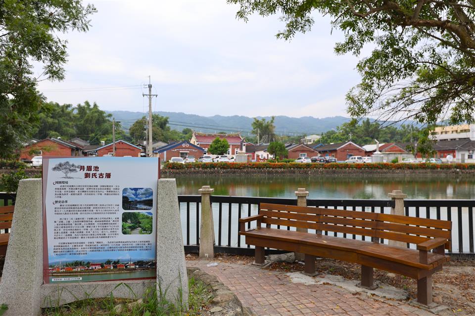簡介 劉家(月眉池團圓堂)第10代於清康熙年間(約西元1700年)由福建省漳州府南靖縣遷到嘉義民雄落腳,前後居住約有47年之久,之後父子三人再遷居彰化縣社頭鄉月眉池,現今人口約有800人,而其中約600人散居全台各地,約只有200人目前尚居住在月眉池現址,每年四節散居全台各地之劉氏家族後裔皆會返鄉祭祀祖先,以表緬懷祖先福澤之慎終追遠。到了第12代(清嘉慶年間)孫劉元炳上京考取武舉人,並獲賜「武魁」之匾,之後即回鄉豎旗祭祖,祖祠兩端興建成「燕尾脊」並於廣場前豎起「旗官牌」之石製旗座。以當時貧窮落後之農村社會來說,是一件相當值得光宗耀祖之盛事,風雲際會劉家族人皆與有榮焉。月眉池團圓堂祖祠原三合院之建築當時房子只有11間,歷經子孫十多代之瓜瓞延綿,現今房子已有420間之多,房宅四周佔地約有三甲地行政區域劃分為三個鄰,該三合院之建築除正身外另有北邊七個護龍南邊六個護龍總共計有十三護龍,以閩臺傳統之建築來說可以說是一個具有相當特色之大聚落。為長久保持該大聚落之特殊景觀,該十三護龍之大宅院自早年即有規定興建房子不得蓋樓房,劉家子孫也都有此共識嚴格遵守至今。月眉池宅落從空中俯視其狀成圓形,當初其先祖興建祖祠時為祈後代子孫皆能團聚、事事圓滿故取名為「團圓堂」。現今之「團圓堂」係於民國八十五年時因遭逢回祿之災,而後由劉家子孫大家捐款重新翻修而成。
