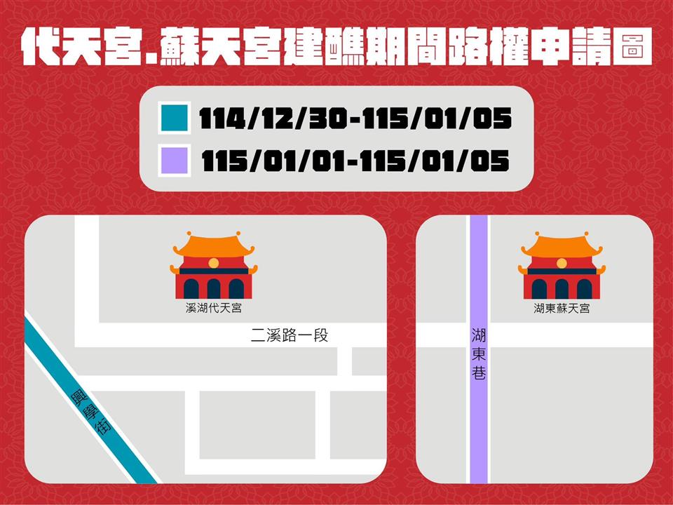 最新公告 彰化縣溪湖鎮公所為辦理「啟建溪湖鎮24年七朝清醮」活動一案,將於 114年12月29日(星期一)至115年1月9日(星期五),辦理活動周邊道路管制,活動期間將管制本鎮部分路段(詳如說明一) 發布日期: 2026/01/05~2026/02/05 | 瀏覽人數: 18人 | 聯絡資訊: 建設課柳銘輝 分機273 彰化縣溪湖鎮公所 函地址:514004彰化縣溪湖鎮湖東里青雅路58號承辦人:約僱人員 張瓊文電話:04-8852121#210傳真:04-8826484電子信箱:ch19@xihu.chcg.gov.tw受文者:彰化縣田中鎮公所發文日期:中華民國114年12月31日發文字號:彰溪樺建字第1140021130號速別:普通件密等及解密條件或保密期限:附件:主旨:本鎮為辦理「啟建溪湖鎮24年七朝清醮」活動一案,將於 114年12月29日(星期一)至115年1月9日(星期五),辦理活動周邊道路管制,活動期間將管制本鎮部分路段(詳如說明一),請配合交通管制措施,敬請各單位配合宣導及張貼公告,請鑒核。說明:一、活動管制道路期間及範圍如下:(一)管制道路:1、信善街2、太平街3、西環路部分路段(福安宮前)4、員鹿路二段與平和街5、員鹿路後溪巷6、崙子腳路大庭巷7、鎮安路8、金地路9、華中街、華中三街、華中六街10、金華街11、興學街12、長青街與湖東巷路口13、福德路14、忠工路(二)管制時間:114年12月29日(星期一)至115年1月9日(星期五)止。(三)行駛車輛請配合交管人員指示引導行駛。正本:彰化縣政府、本縣各鄉鎮市公所(溪湖鎮公所除外)、員林汽車客運股份有限公司、彰化汽車客運股份有限公司、彰化縣警察局、本縣各警察分局、各里辦公處副本:本所建設觀光課鎮長 何 炳 樺