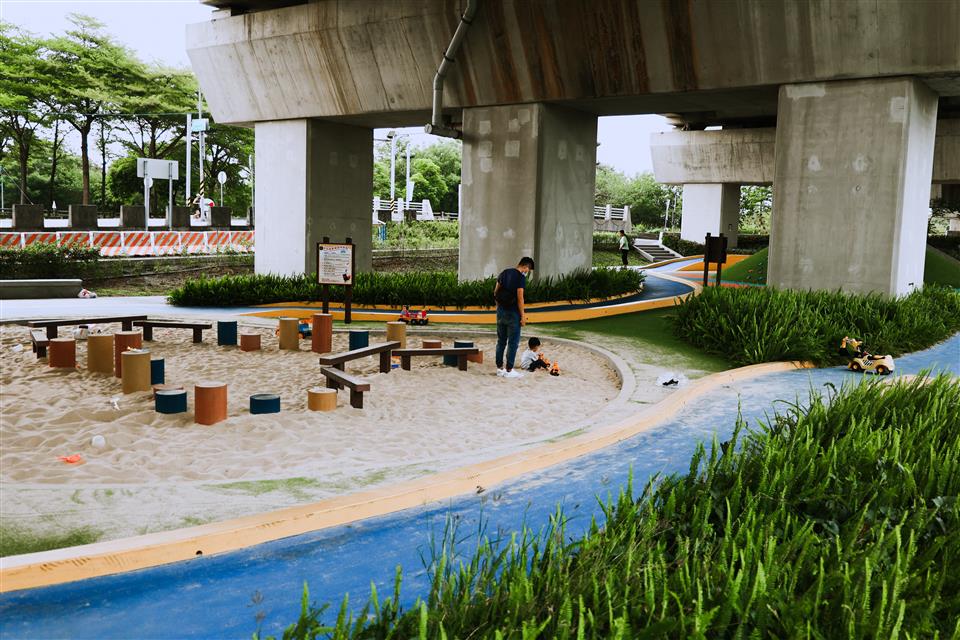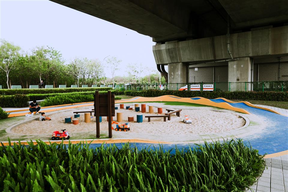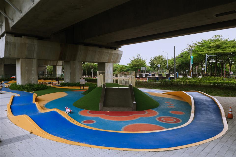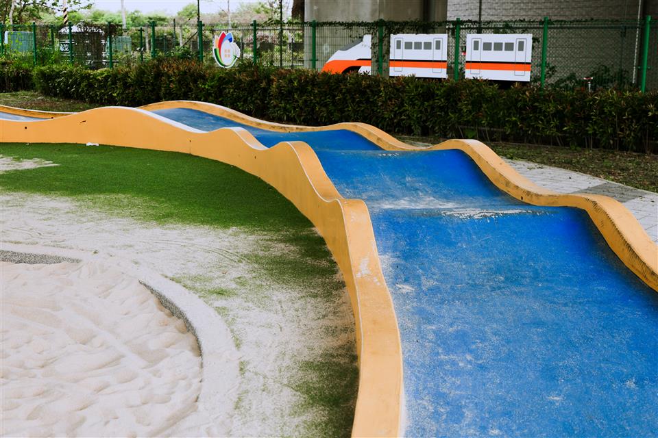 【下雨天也能玩的公園】滑步車公園位於彰化高鐵橋下,專為兒童設計作為練習和騎乘滑步車的遊戲場域。園區內設施多元,有滑步車道、土丘遊戲場、沙坑遊戲場等,是可以訓練兒童體力,也能增進親子互動的好去處。