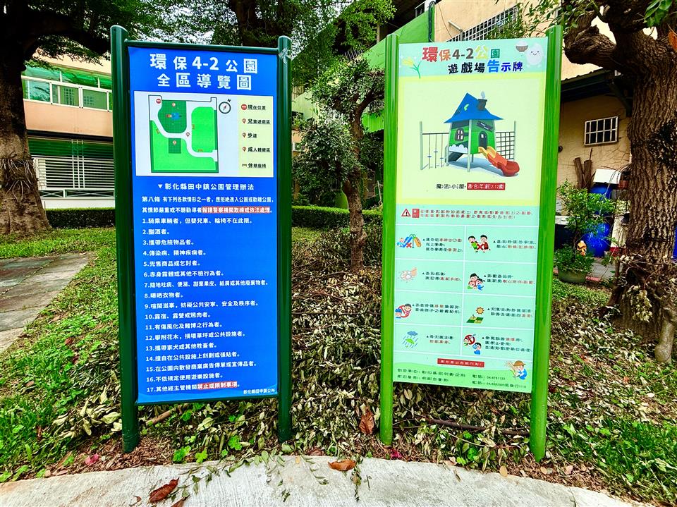環保公園4-2位於田中後火車站,園區內除了設有可愛的魔法小屋溜滑梯,可供2-12歲兒童使用,另外還有成人體健設施,為社區民眾休憩遊樂的場所。