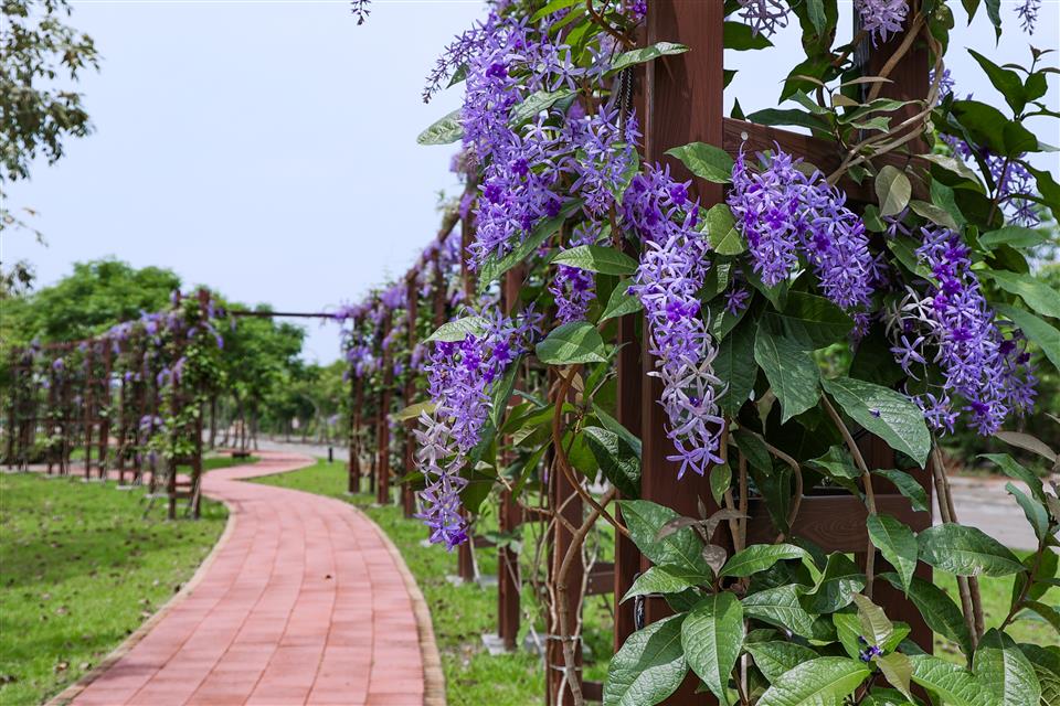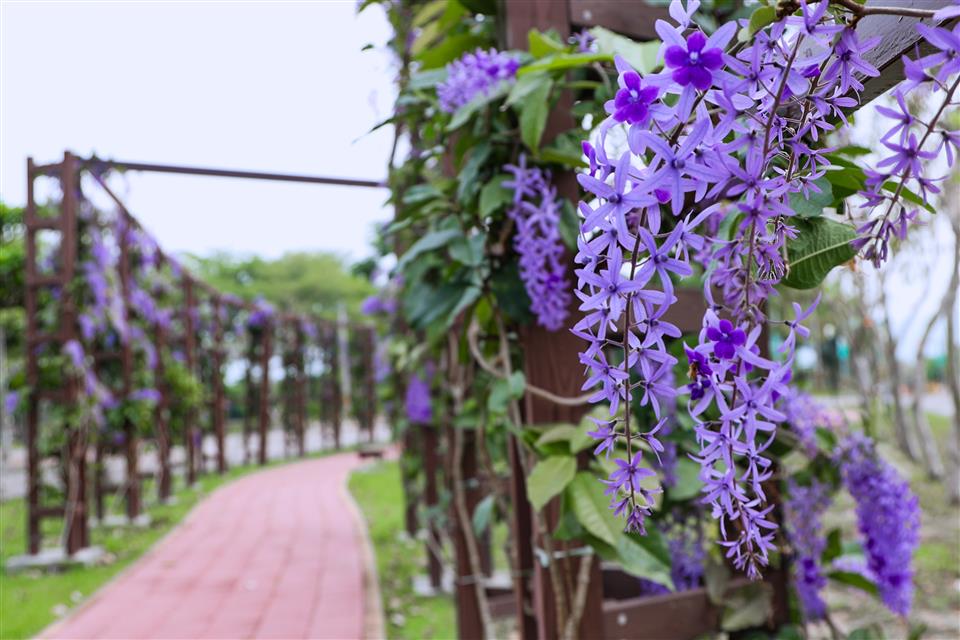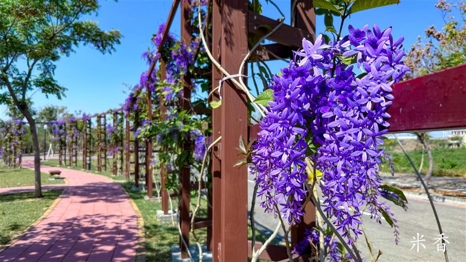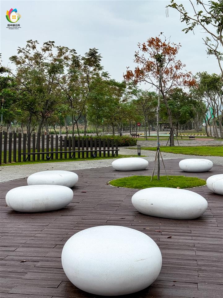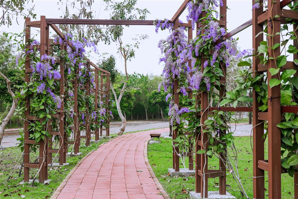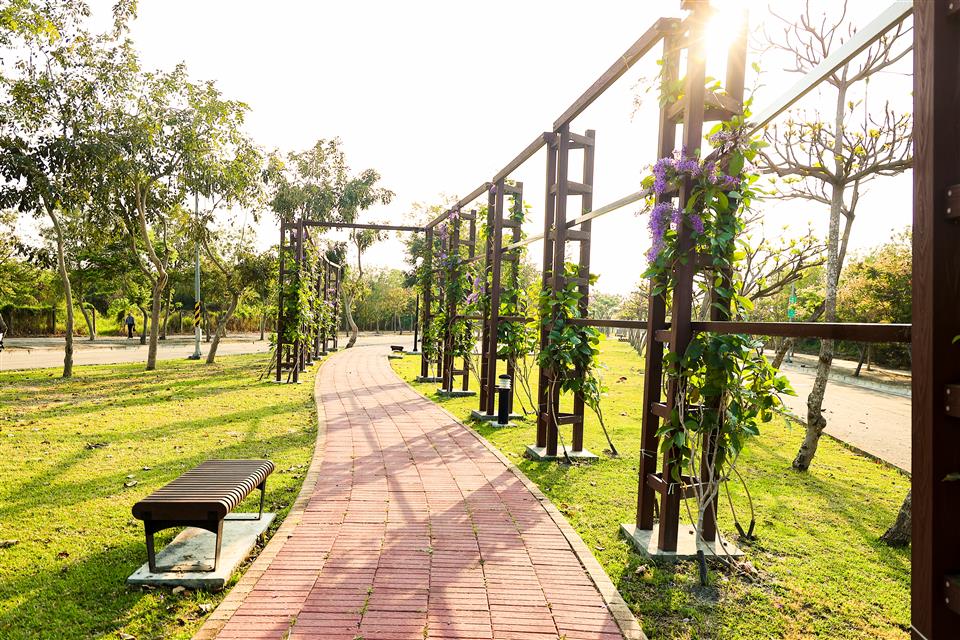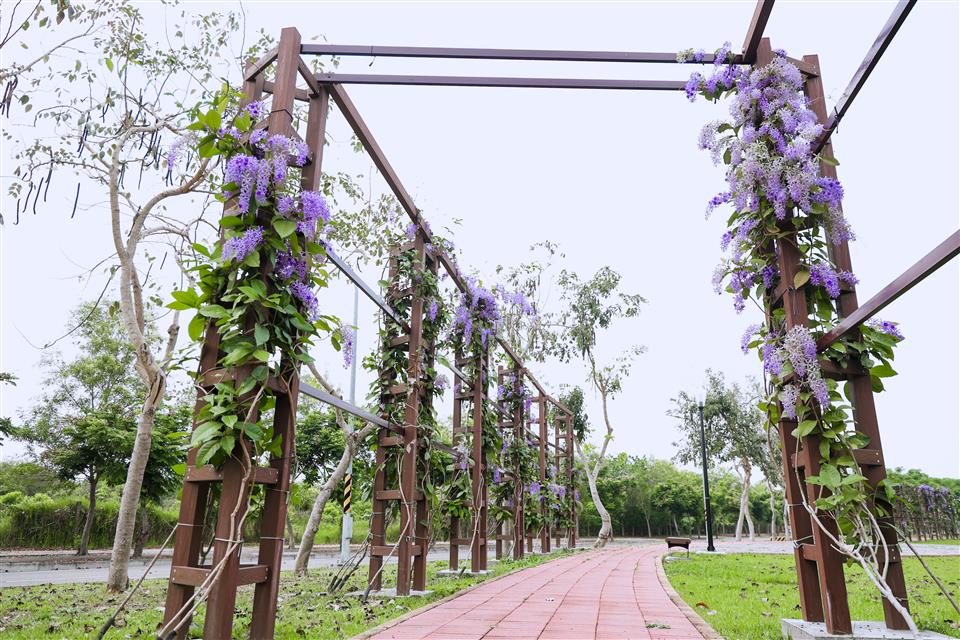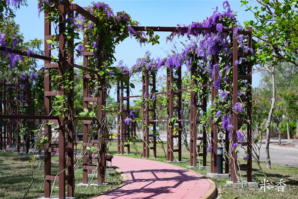 簡介 【高鐵田中路綠色走廊】 一期廊道種植大面積的許願藤,花期時,廊道兩側的紫色花牆美得讓人流連忘返,是個拍照打卡的絕佳景點。 二期廊道則以田中鎮徽為概念,設計以金、木、水、火、土五行五色之理念,打造「雲朵廣場」、「18度廣場」、「水波紋廣場」、「田間秘鏡」及「米寶」等意象,呈現了田中的歷史文化與田中在地環境與產業特色。 三期廊道為延伸並連結三鐵跑水路線,串連高鐵田中路綠色走廊第一期、第二期計畫範圍、滑步車公園,將民眾從一個美景引領至另一個美景,彷彿漫步在自然的畫廊中。並配合基地地形,以符合中央人本環境規範圍規劃設計原則,期望除了增加綠化附蓋面積外,進而增設藝術空間,將整體空間串連及活化。提供更安全舒適的步行空間,讓民眾有一個休憩的好環境。