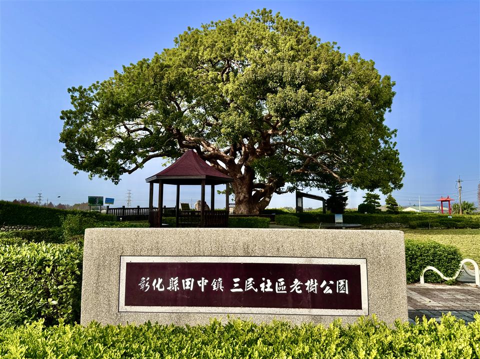 簡介 【老樹公園】 三民社區有四棵著名的百年老樹,分別為木棉樹、芒果樹和老樹公園的夫妻樹(茄冬樹),是三民社區的百年綠色寶藏。從參天宮出發,會先看到一棵參天古樹-木棉樹,抬頭才能看盡樹的全貌,讓人驚艷。再往前走,則會看到同為百年老樹的芒果樹。緊接著會來到三民社區【老樹公園】,公園內最引人注目的是百年夫妻樹(茄冬樹),枝葉茂盛,最特別的是它們一左一右,像是一對恩愛百年的夫妻相伴扶持,見證時光流轉,象徵愛情珍貴永恆,為田中鎮內著名景點之一。公園亦設有優美的景觀公園,提供充足活動空間的大片草皮、水池,還有休憩涼亭,以及可供活動使用的表演舞台,鄉親們農閒時也會相聚聊天、散步,欣賞田園風光景色,是一個能悠閒漫遊的最佳選擇。