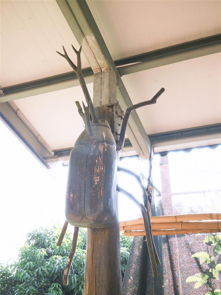 簡介 樹枝蟲藝術是復興社區居民將原本廢棄的枯枝、種子、落葉或石頭重組,化腐朽為神奇,做成各式栩栩如生的昆蟲工藝品。園區旁有間厝邊ㄟ灶咖(拍攝時非營業時間),是間古早味美食,他們將古早的腳踏式【針車】、具有歷史的【紅眠床】、童年學校課桌椅作為餐桌,相當具有特色~