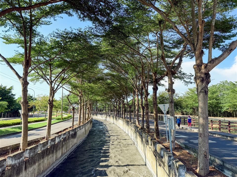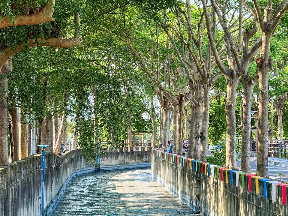 簡介 沿著田中八堡圳景觀廊道平緩的步道前行,能一邊享受微風吹拂,一邊欣賞廊道美景,這裡不僅是歷史工程的見證,更是提供了一個友善且慢活的空間,已成為鎮民晨間慢跑與傍晚散步的後花園。 田中八堡圳景觀廊道兩旁種滿了茂密的林木,交織成綿延數公里的天然綠色隧道,隨著季節流轉,這裡的景色展現出不同的樣貌,春日嫩綠、夏日清涼、羊蹄甲花的粉嫩、阿勃勒盛開的金黃...,沿岸景觀優美,且當陽光穿過樹葉灑在波光粼粼的圳水上,那份光影交錯的靜謐感讓人彷彿置身世外桃源。 此外,田中八堡圳景觀廊道-滑步車公園旁的休息區是以蜿蜒的線條模擬八堡圳的流水而建,休息區有2隻超萌的「寶圳仔」和「喔熊」裝置藝術,如果有前往田中八堡圳景觀廊道輕旅,可以跟「寶圳仔」和「喔熊」拍張可愛的合照唷!