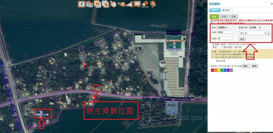 檢送屏東縣崁頂鄉公所頂仁段37號土地內無主骨骸1具認領公告、照片、地籍圖各1份