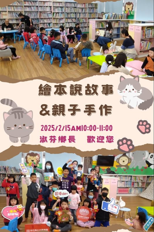 其他資訊 💕繪本說故事活動預告💕 日期:2月15日(六) 時間:上午10:00-11:00 地點:圖書館一樓兒童閱讀區 內容:繪本說故事+DIY手作 報名的讀者請準時參加喔,逾時不候。 勤洗手🖐保持社交距離👣你我都健康💪💪 歷史訊息 | 發布日期: 2025/02/17~2025/03/17 | 瀏覽人數: 21人