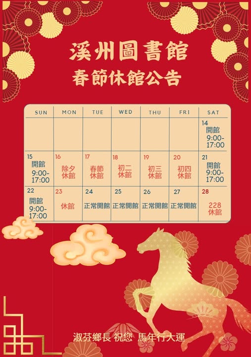 2026年春節休館公告暨開館時間調整