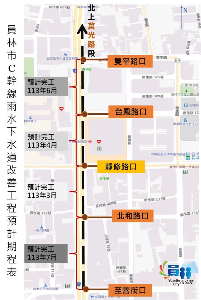 最新公告 員林市C幹線雨水下水道改善工程預計期程表 歷史訊息 | 發布日期: 2023/12/12~2024/07/31 | 瀏覽人數: 75人 | 聯絡資訊: 員林市公所 04-8347171 詳情請參閱附圖~