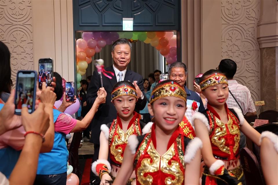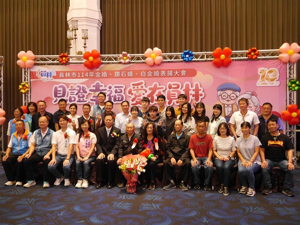 今年共有白金婚(70年)6對、鑽石婚(60年)78對、金婚(50年)342對,令人敬佩與感動。他說:「所謂『執子之手,與子偕老』,在人生的長河中,能與伴侶相知相惜五十年、六十年、甚至七十年,實屬難能可貴。」各位長輩不僅是家庭的楷模,更是社會的典範,以「愛與包容」守護家庭,以「智慧與毅力」教養子女,讓家庭溫馨長存、感情歷久彌新。