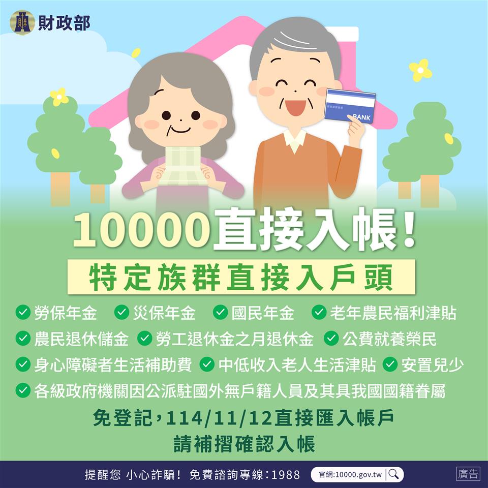 其他資訊 有關「全民+1 政府相挺」普發現金發放作業自114年10月23日起正式啟動,相關連結如下檔案 發布日期: 2025/11/11~2026/12/31 | 瀏覽人數: 46人 | 聯絡資訊: 謝宗諺 04-8972001分機210